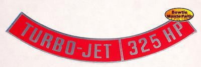 TURBO-JET 325 HPFactory Air Cleaner Engine Decal.Free domestic shipping on this item! (international orders please click on shipping tab) Accurate and correct reproduction of original TURBO-JET 325 HP air cleaner decal used on select Chevrolet models including: